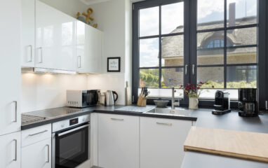Die moderne Küche ist offen angelegt und mit allem ausgestattet, was man benötigt, um nicht nur den schnellen Snack für zwischendurch, sondern auch das Mehrgängemenü am Abend zubereiten zu können.