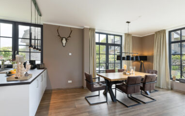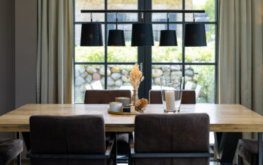 Großzügige Fensterfronten, ein komfortabler Esstisch mit 6 sehr bequemen Stühlen prägen diesen lichtdurchfluteten Bereich und laden zum gemeinsamen Essen und anschließenden Verweilen ein, denn auch von hier aus kann man das Kaminfeuer genießen.