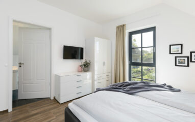 Dieses großzügige Schlafzimmer mit einem Doppel-Boxspringbett verspricht einen erholsamen Schlaf - vom ersten Tag an!