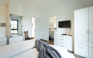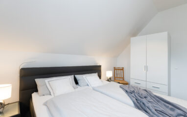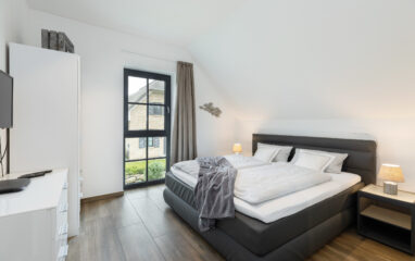 Dieses großzügige Schlafzimmer mit einem Doppel-Boxspringbett verspricht einen erholsamen Schlaf - vom ersten Tag an!