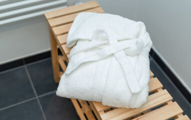 Eine Handbrause zur Erfrischung nach dem Saunagang ist vorhanden. Unser Sauna-Paket, bestehend aus einem Bademantel und einem Saunalaken, kann bequem vor Ort gebucht werden.