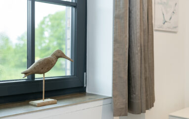 Die Gardinen sind mit einem Verdunkelungsstoff unterfüttert - für Gäste, die lieber abgedunkelt schlafen mögen und ein Fliegenschutzgitter sorgt auch bei geöffnetem Fenster für eine ungestörte Nachtruhe.