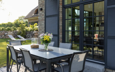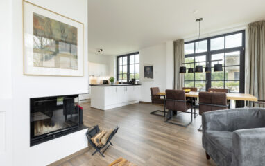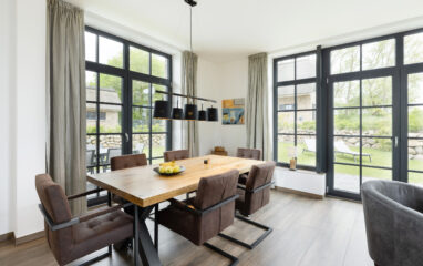 Großzügige Fensterfronten, ein komfortabler Esstisch mit 6 sehr bequemen Stühlen prägen diesen lichtdurchfluteten Bereich und laden zum gemeinsamen Essen und anschließenden Verweilen ein, denn auch von hier aus kann man das Kaminfeuer genießen.