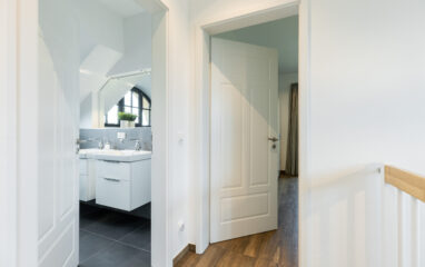 Das Masterbad mit 2 Waschbecken inkl. Unterbauschränken, großzügiger Badewanne, Dusche und WC bietet alle Annehmlichkeiten und ist direkt vom Schlafzimmer aus zu begehen.