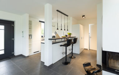 Der Küchentresen mit seinen Barstühlen lädt während der Vorbereitung oder auch zwischendurch zum gemütlichen Verweilen ein.