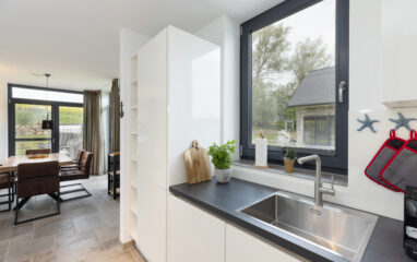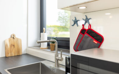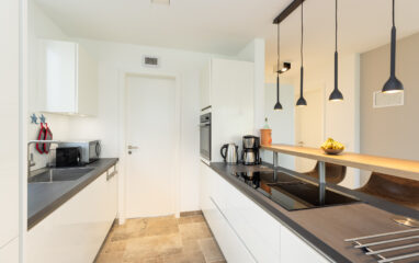 Die moderne offene Küche ist komplett ausgestattet. Hier kann nicht nur der schnelle Snack für zwischendurch sondern auch ein umfangreiches Mittag- bzw. Abendessen zubereitet werden. Das Fenster verfügt über ein Fliegenschutzgitter.
