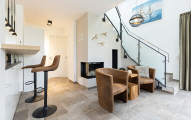 2 Sessel laden zu gemütlichen Stunden vor dem wärmenden Kaminfeuer ein - ob mit einem duftenden Tee/ Kaffee oder einem guten Glas Wein entscheiden Sie.