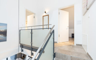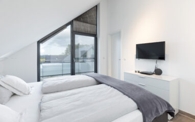 Dieses großzügige und zur Gartenseite ausgerichtete Schlafzimmer ist mit einem Doppel-Boxspringbett eingerichtet und verspricht einen erholsamen Schlaf - vom ersten Tag an!